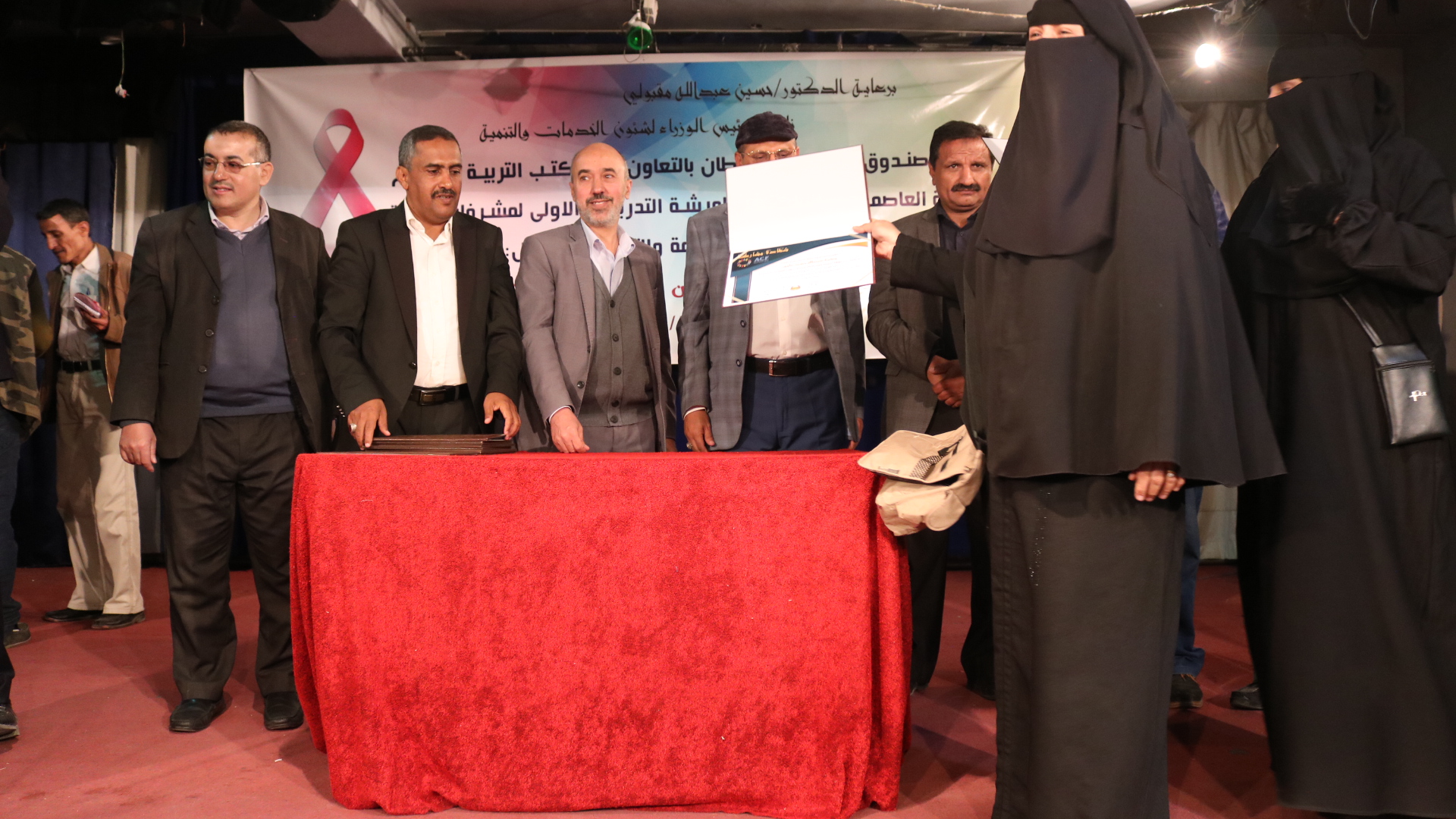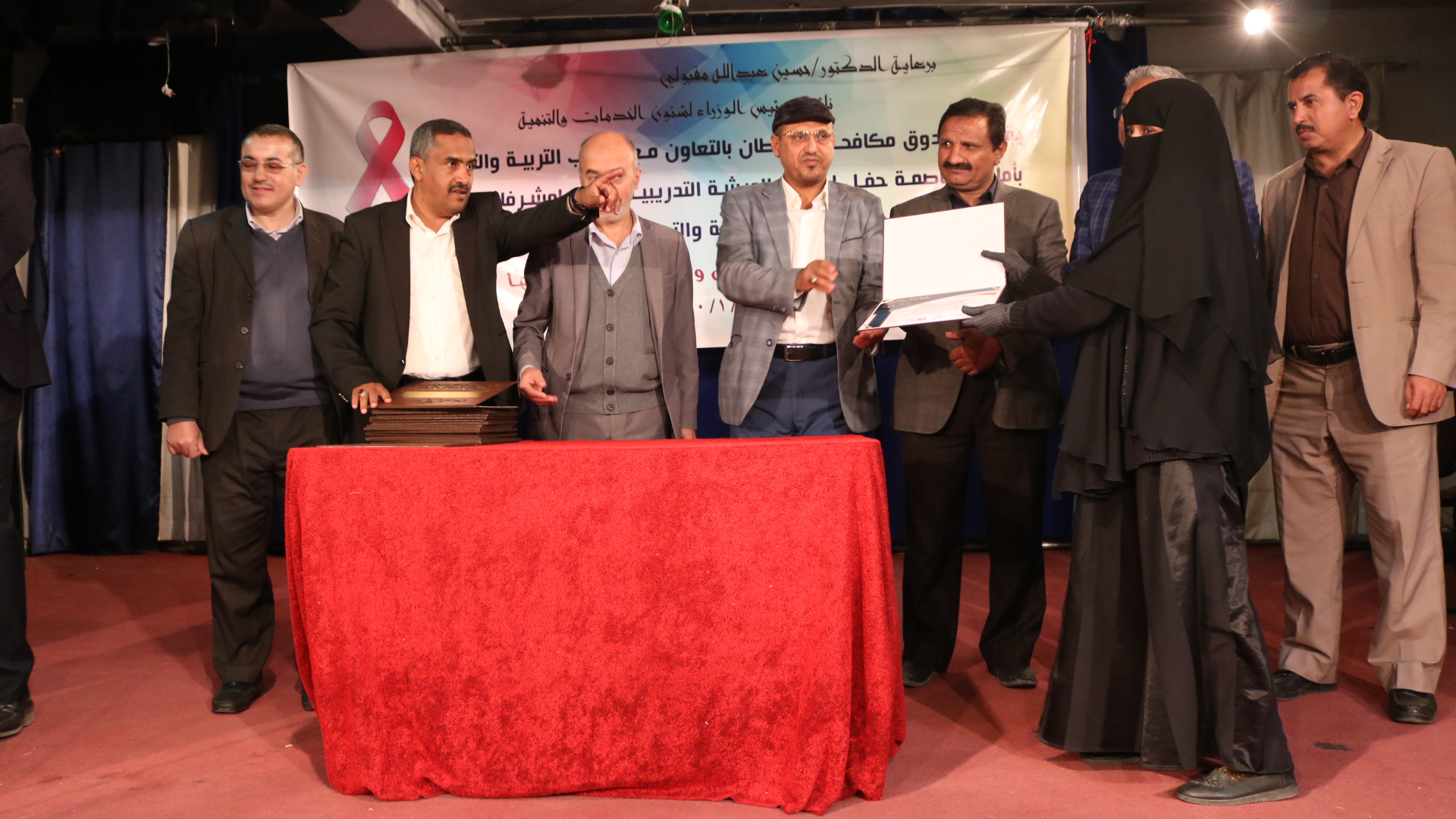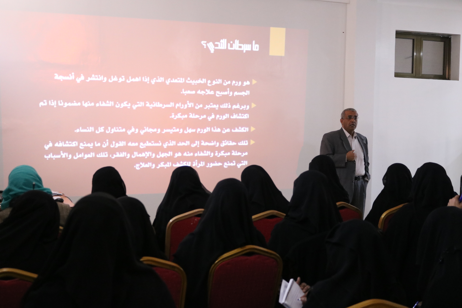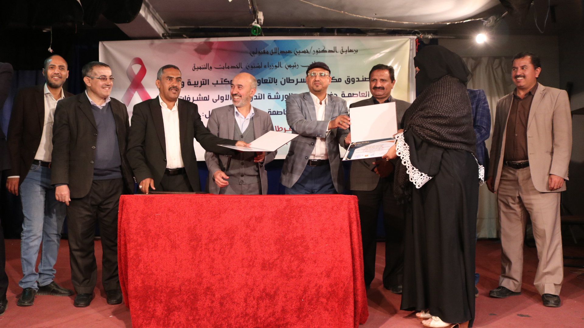 12-11-2020اختتمت اليوم الأربعاء 29 يناير 2020م، بصنعاء الورشة التدريبية الاولى للمشرفات الصحيات بمدارس امانة العاصمة حول التوعية بأمراض السرطان ووسائل الوقاية منها التي نظمها صندوق مكافحة السرطان. و هدفت الدورة على مدى ثلاثة ايام الى اكساب 30مشاركة من المشرفات الصحيات بعدد من مدارس امانة العاصمة عدد من المعارف و الخبرات حول مرض السرطان ، اكثر الامراض السرطانية انتشارا في اوساط النساء ، كيفية اعداد الرسالة التوعوية بامراض السرطان و وسائل الوقاية منه.