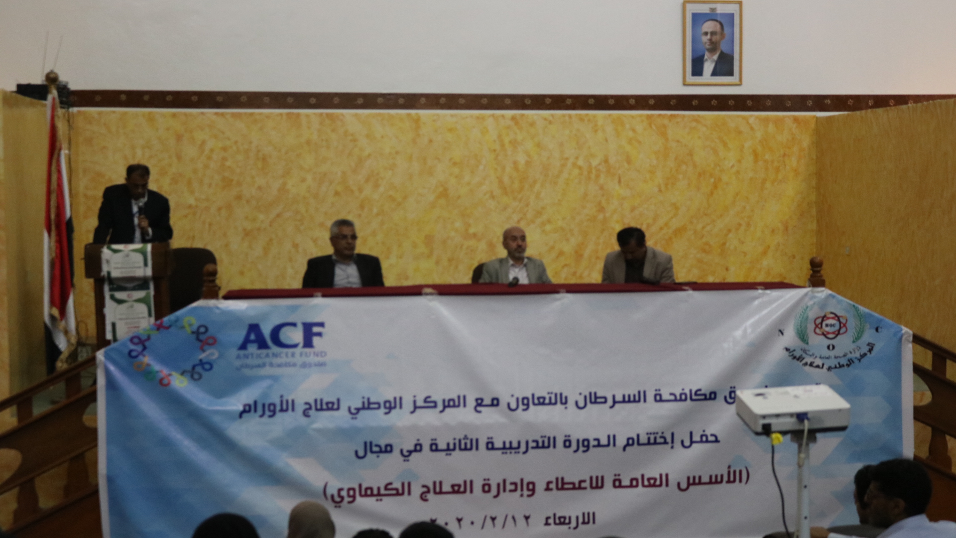 اختتمت اليوم بصنعاء دورة تدريبية حول الأسس العامة للإعطاء وإدارة العلاج الكيماوي التي نظمها لمدة ثلاثة أشهر صندوق مكافحة السرطان بالتعاون مع المركز الوطني لعلاج الاورام.